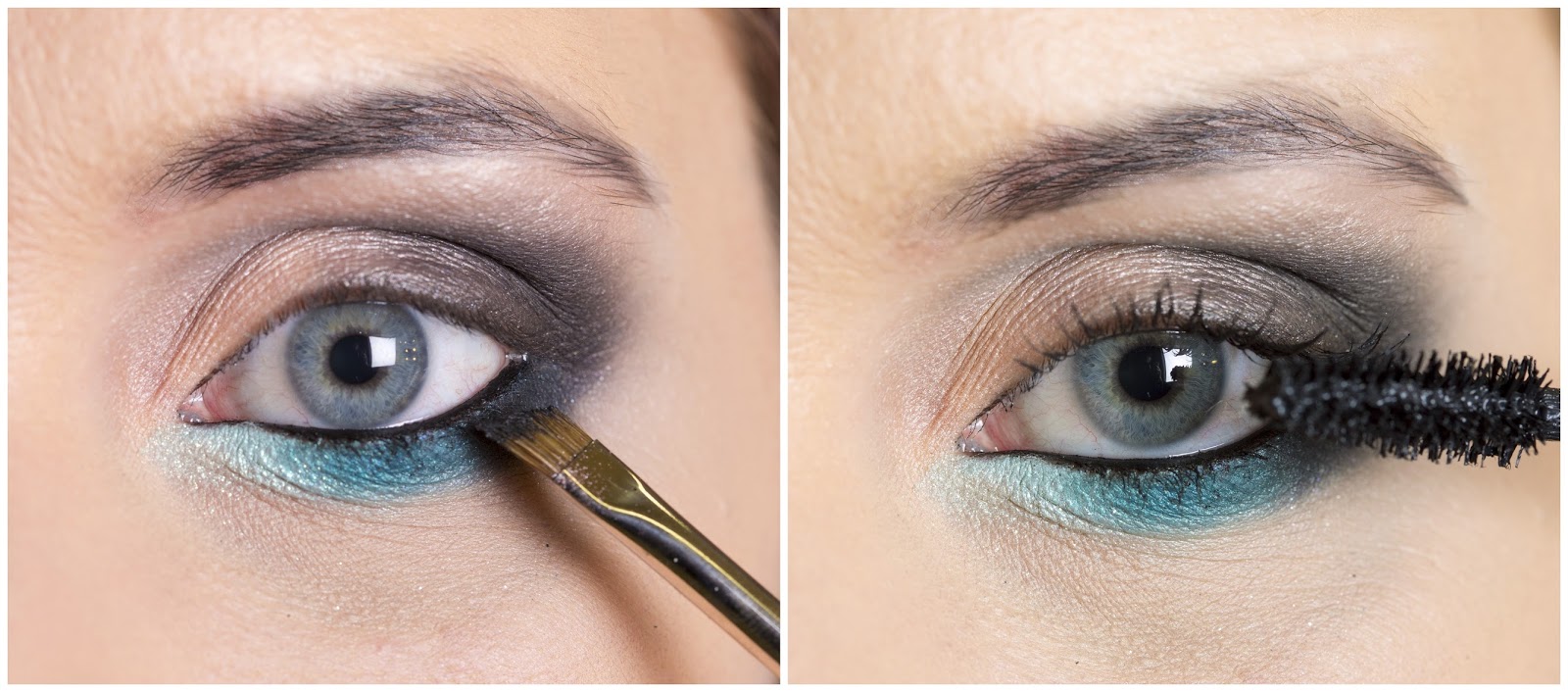 Kreskę rozcieram pistacjowym cieniem Artdeco 251. Tuszuję rzęsy i... pierwsza wersja gotowa ;-)